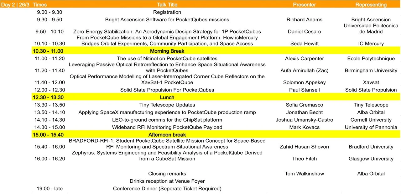 2026 PocketQube Conference Schedule